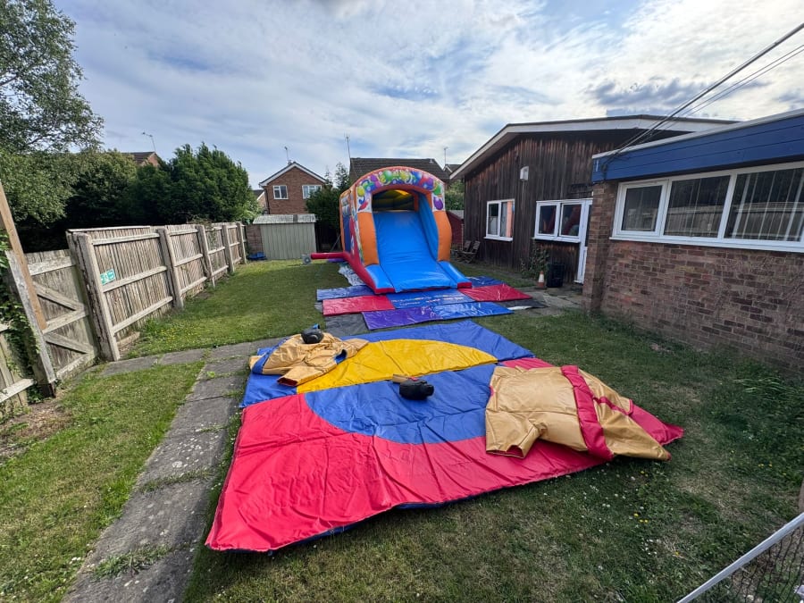 ✔ Check out our MEGA bundle deals which can include our 28 ft Fun Run, Twin Slide Play Park and Adult Bouncy Castle.