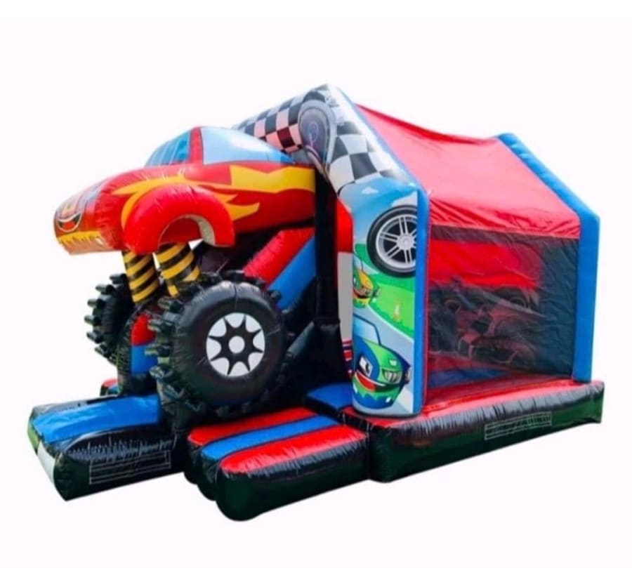 This Monster Car slide bouncer requires a Minimum set up space of 20ft width and 24ft length please take this into consideration before booking .