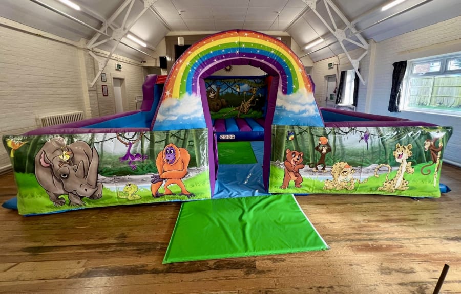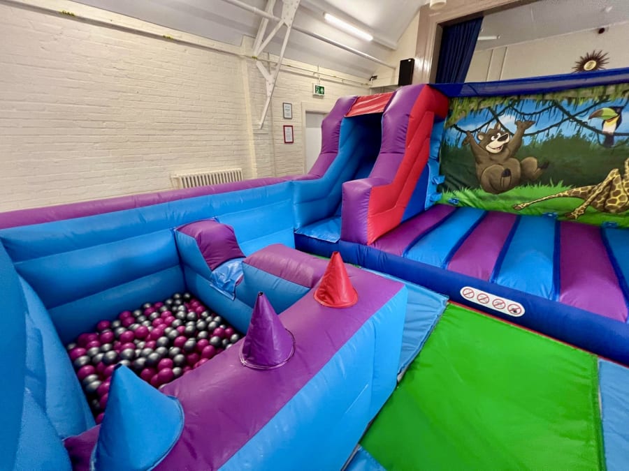 Jungle Headquarters ready for a fun filled day. Engage your little ones with this Play Park, featuring 2 slides, a bouncy castle area and ball pool. Perfect for large events and family gatherings.